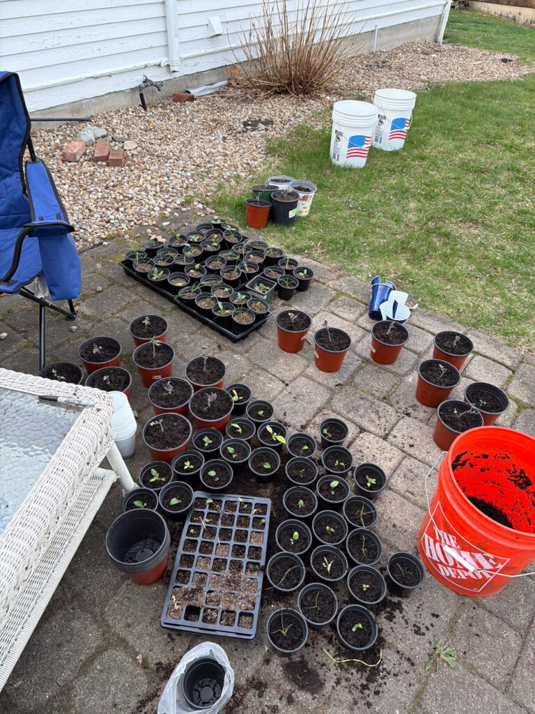 Right now, I’m focused on trying to establish our Piet Oudolf-style garden. I took about 100 bamboo skewers and put them in the ground to outline paths from the house, to the fire pit (old pool location), to the “farm” (2 50×50 patches we will have rows for vegetables and flowers), to a nice seating area. I will do a mix of perennial and annuals this year since a lot of the perennials may not bloom until after the coming winter. I can’t wait for the last frost to be done so I can start putting things into the ground.